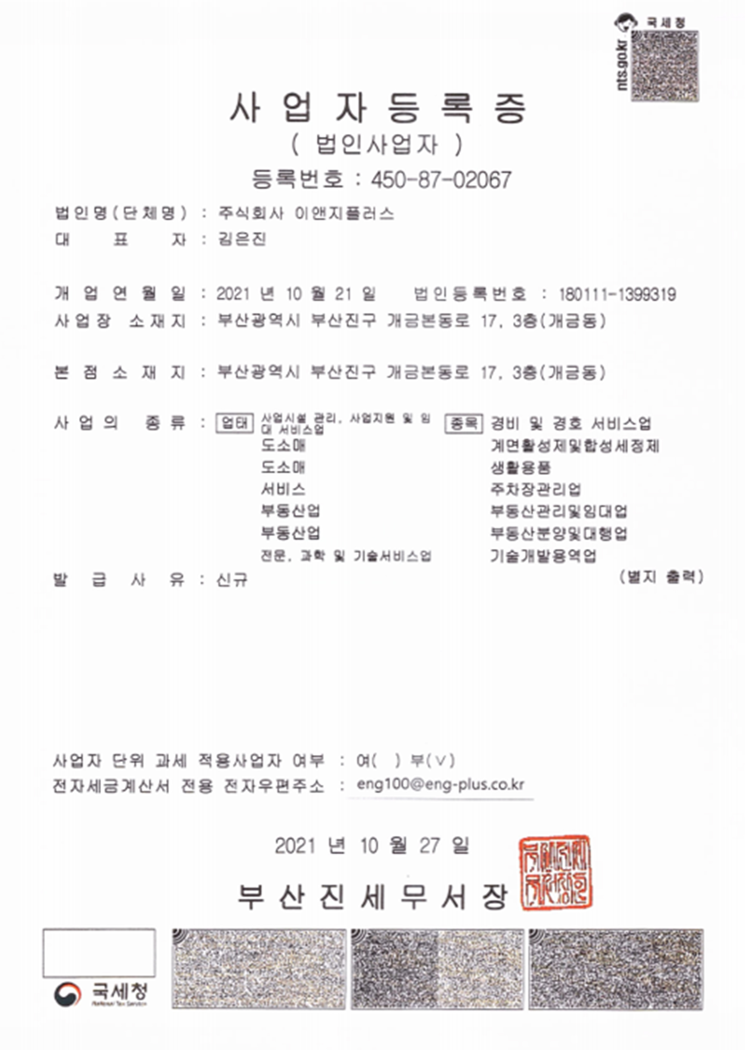 주식회사 이앤지플러스입니다.